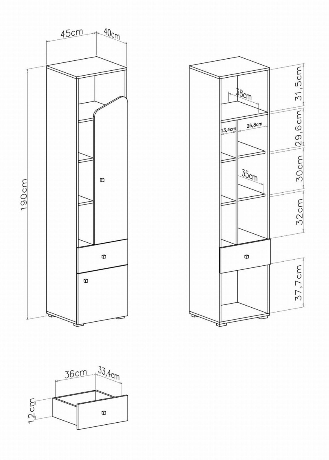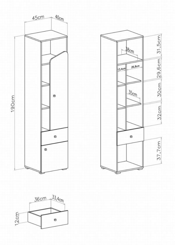 • Mitat: leveys 45 x syvyys 40 x korkeus 190 cm