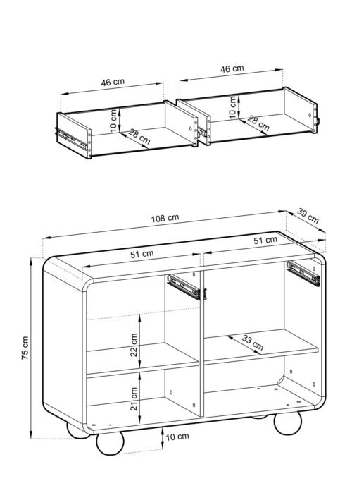 • Mitat: leveys 108 × syvyys 39 × korkeus 75 cm