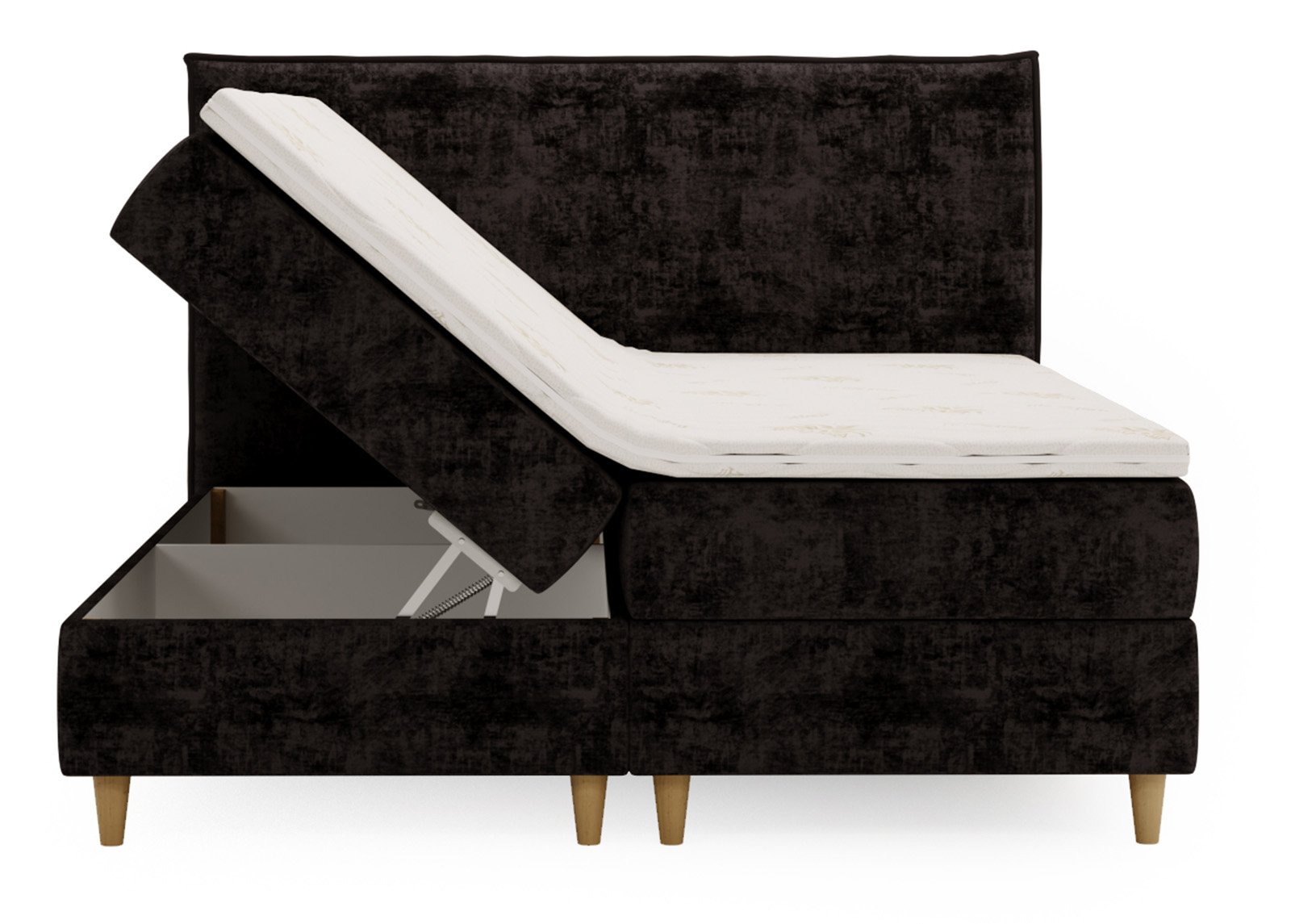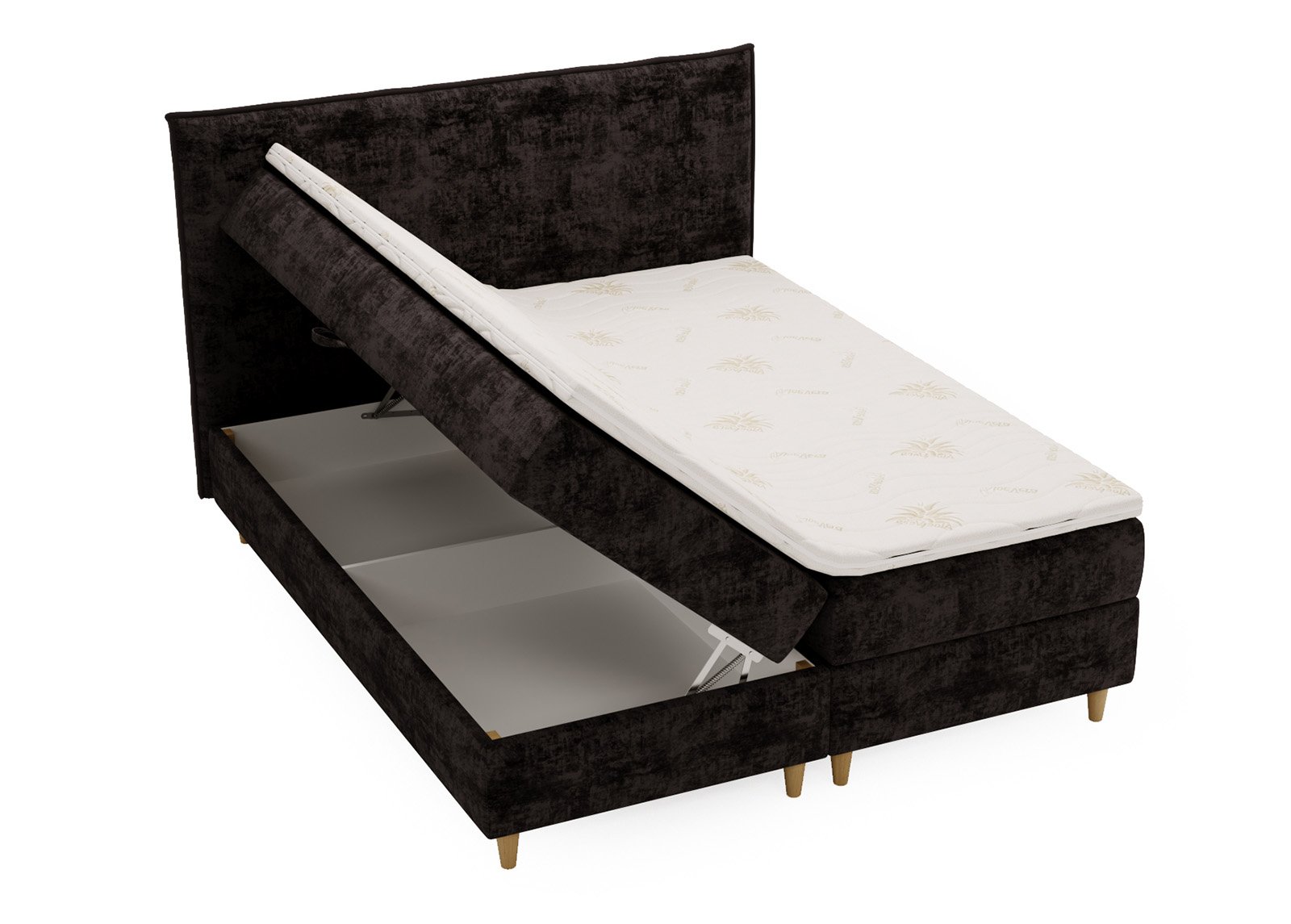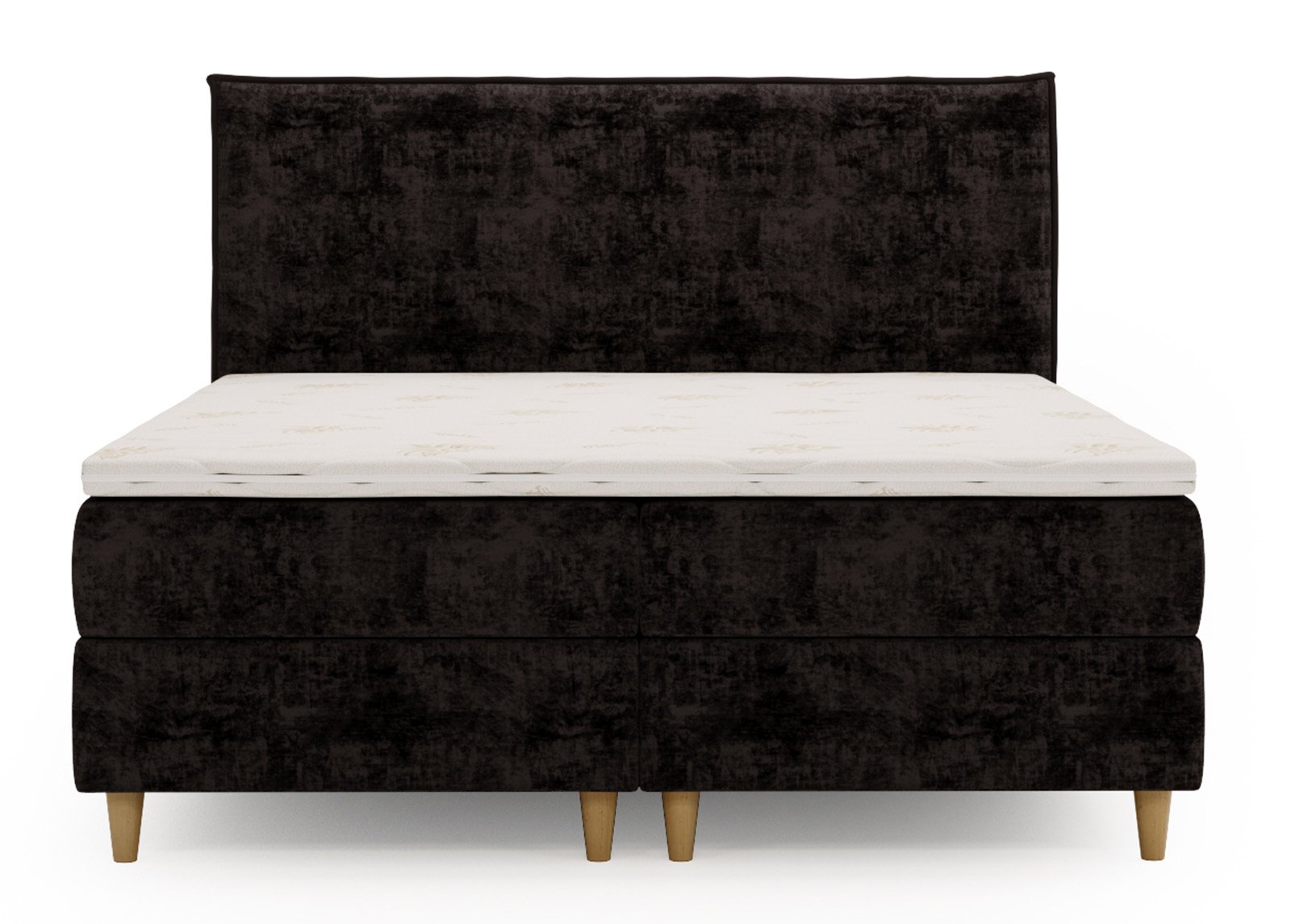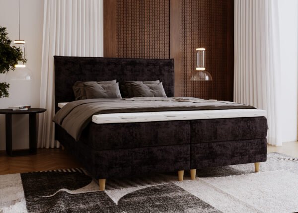 • Sänky on verhoiltu pehmeällä kuviollisella samettikankaalla