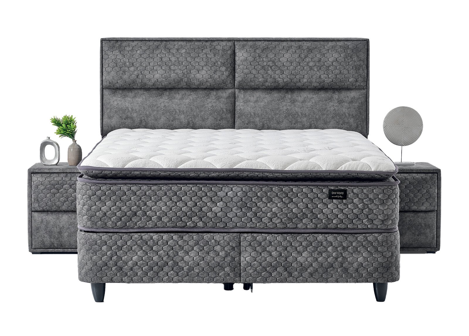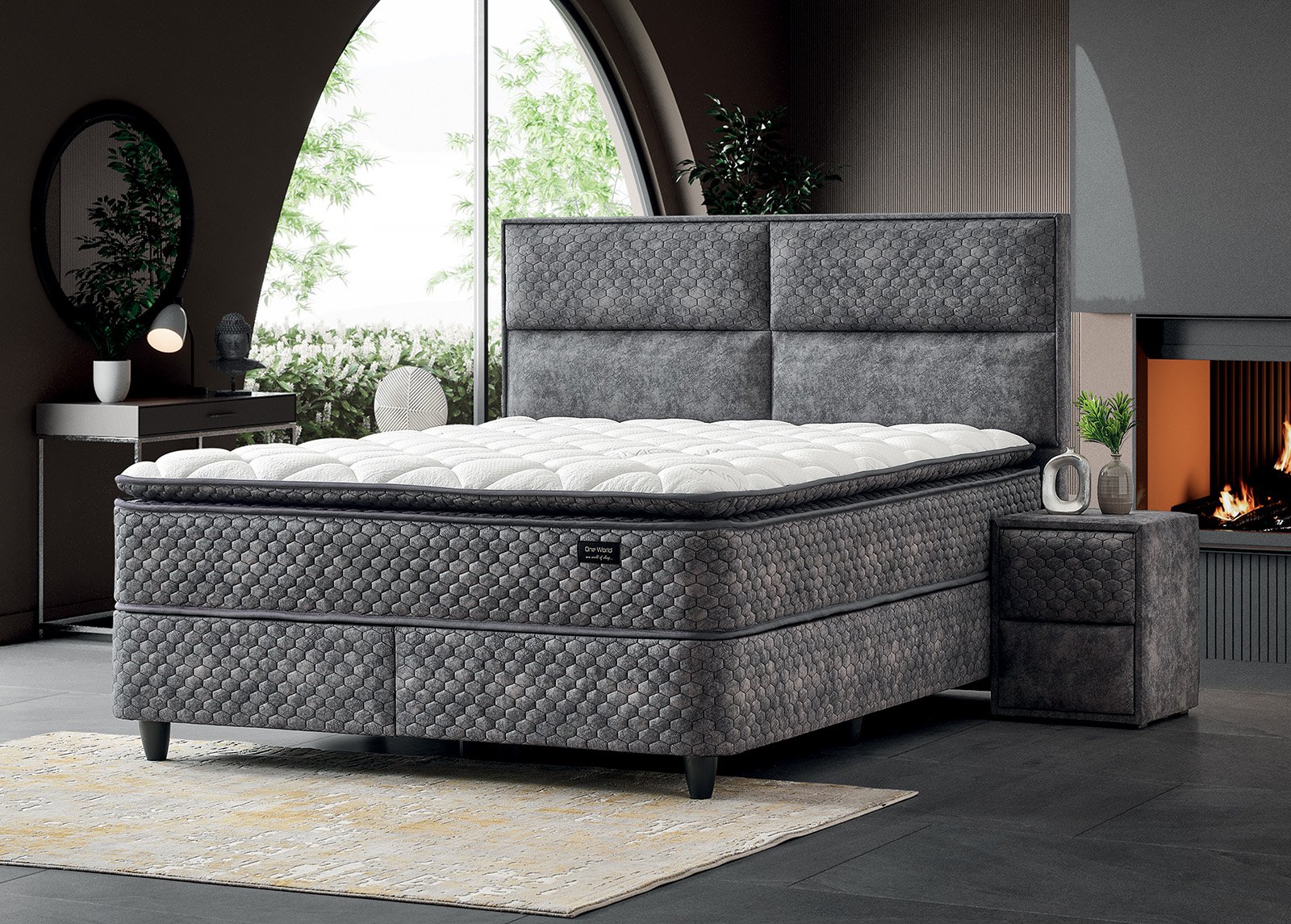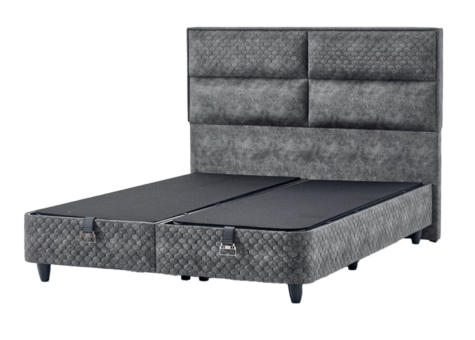 • Tummanharmaa Kangas luo ylellinen kokonaisvaikutelma ja piilottaa taitavasti sängyn alle jäävän säilytystilan.