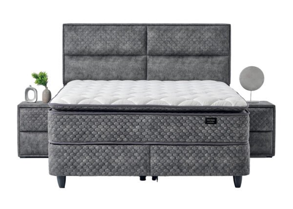 • Tummanharmaa kangas täydentää sängyn yleisilmettä ja sopii helposti yhteen eri värimaailmojen kanssa.