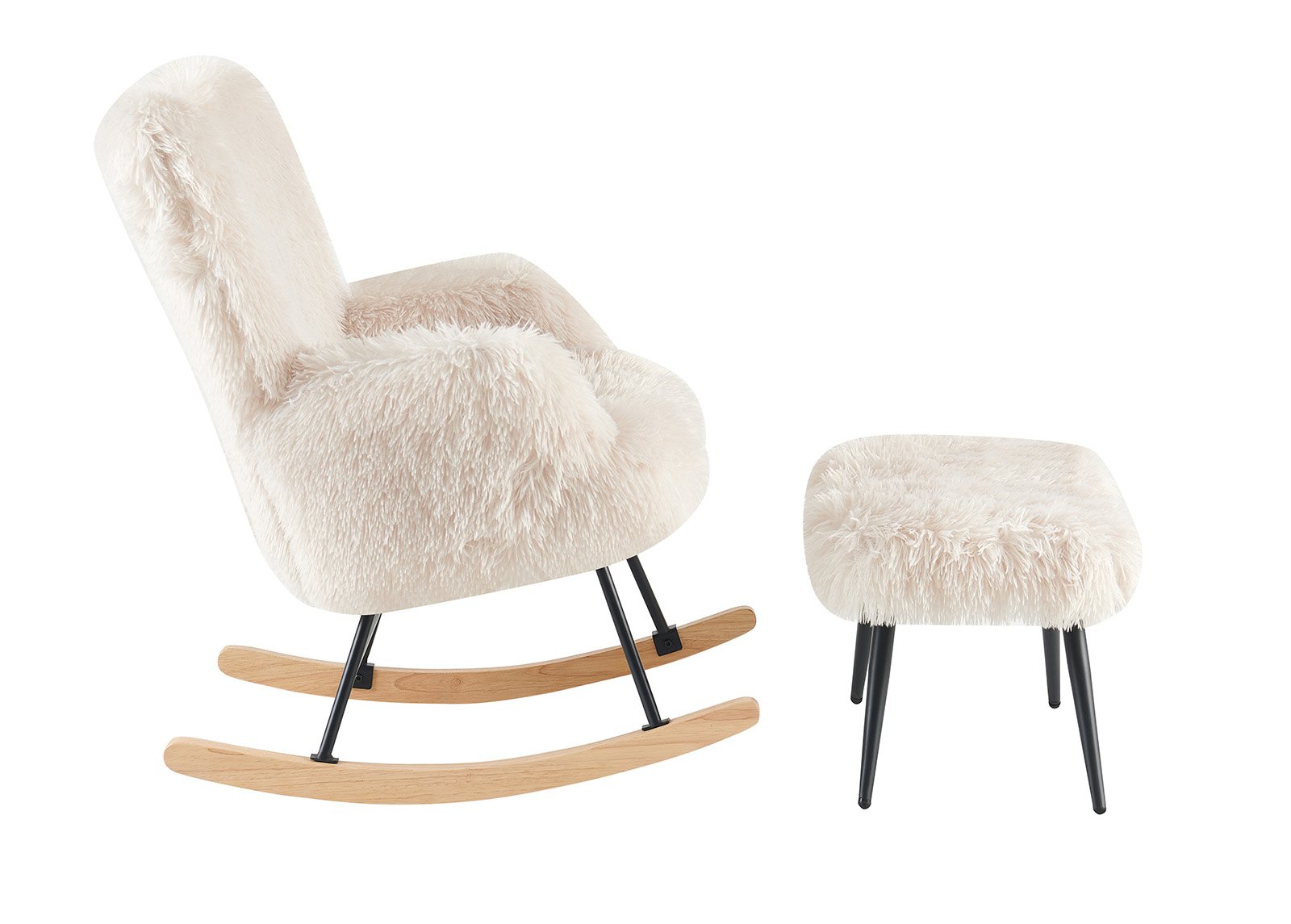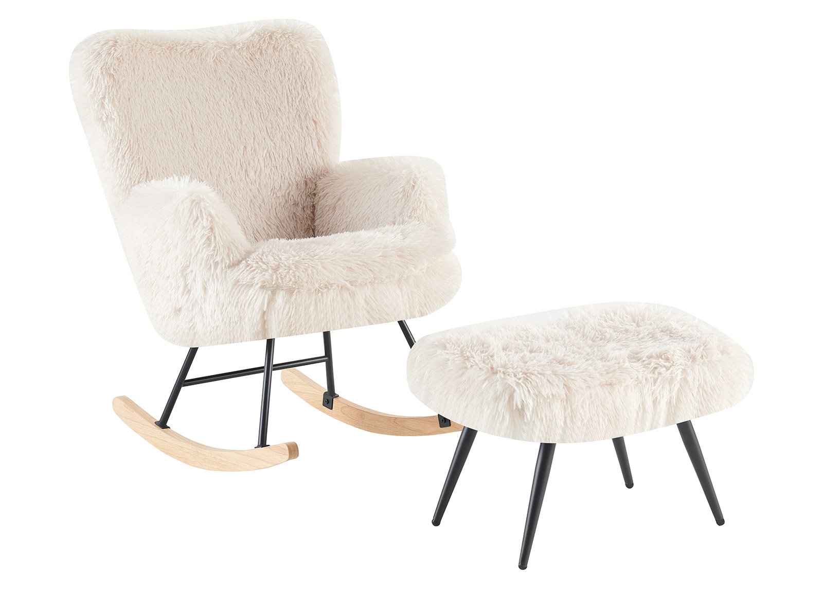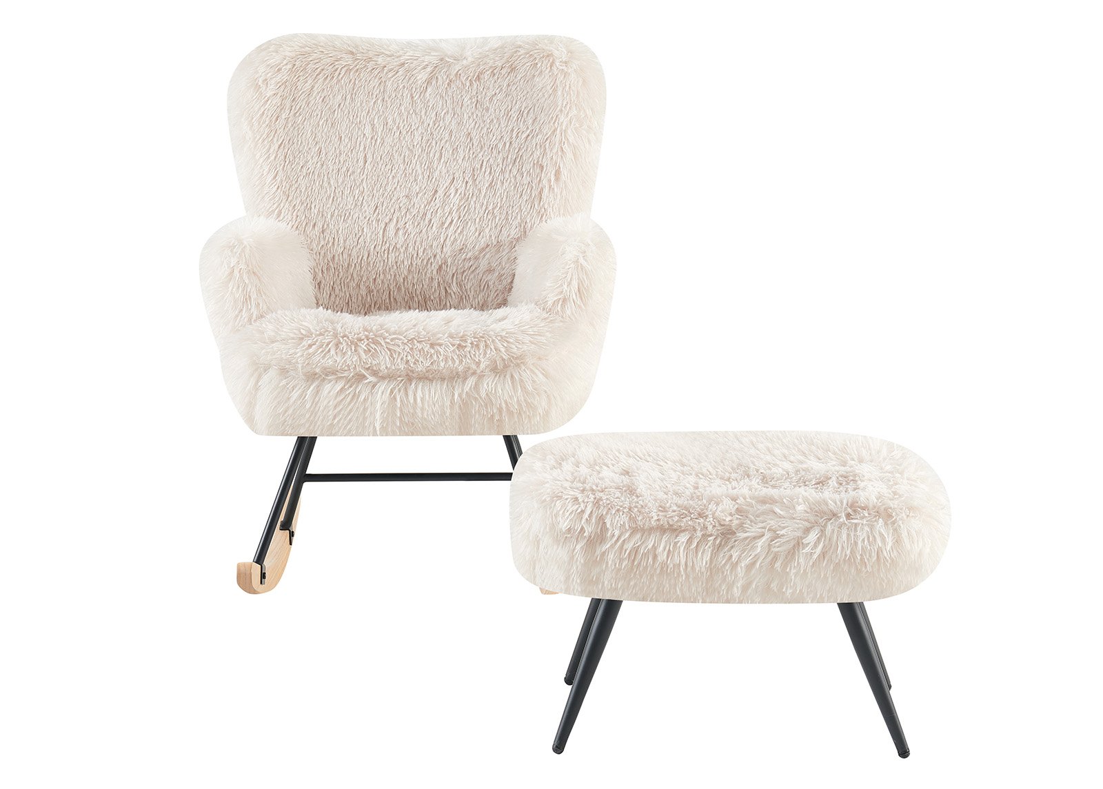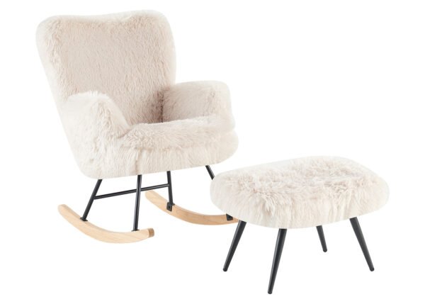 Tuoli ja jakkara päällystetty karvaisella kankaalla