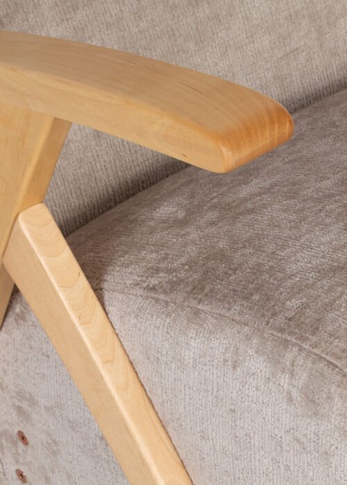 Tuoli on verhoiltu Perfect Harmony 04 -kankaalla — kaunis beige chenille-kangas, jolla on kevyt kiilto ja pehmeä rakenne. Tämä ylellisen näköinen kangas lisää sisustukseen lämpöä ja eleganssia, ja se sopii niin klassiseen kuin moderniinkin sisustukseen.