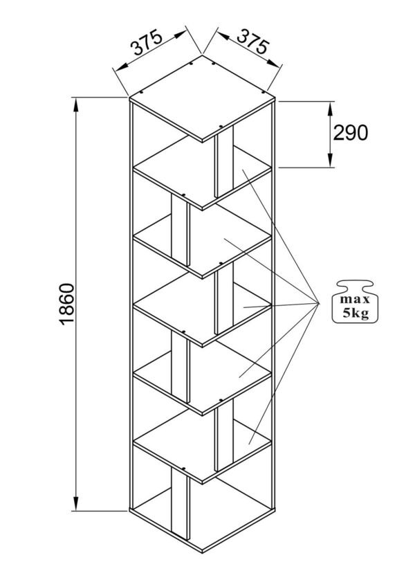 • Mitat: leveys 38 x syvyys 38 x korkeus 186 cm