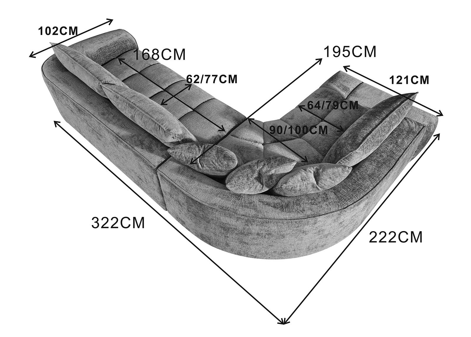 • Pyöreä kulmaosa lisää Antaa sohvalle Leikkisä ja pehmeämpi ilme