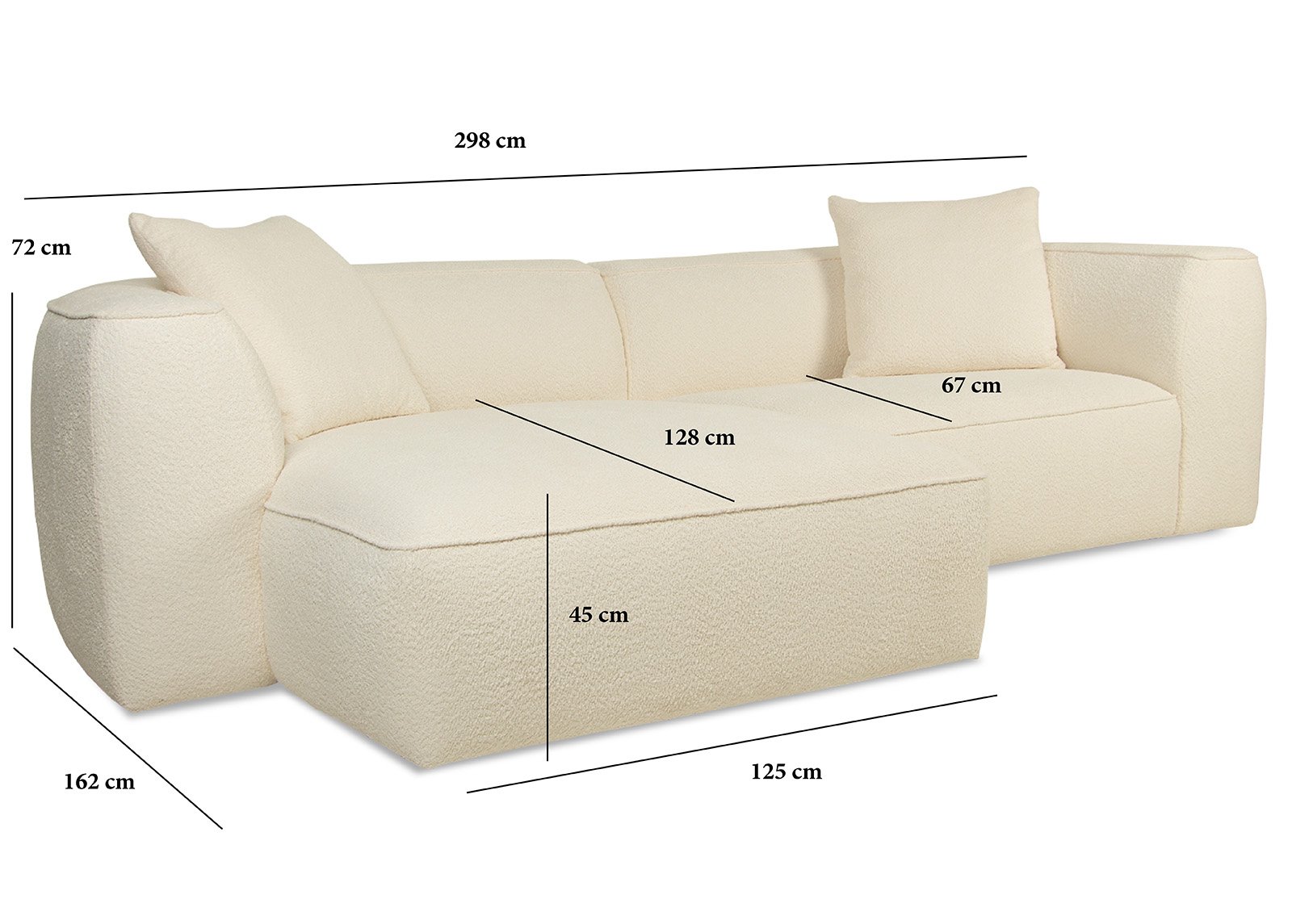 • Sohva: leveys 290 x syvyys 165 x korkeus 74 cm
