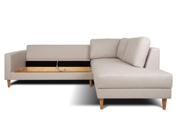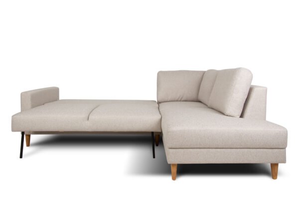 Tyylikäs ja toimiva, Virossa valmistettu kulmasohva yhdistää modernin muotoilun, arjen mukavuuden ja käytännöllisen säilytystilan. Korkealaatuisesta vaahtomuovista ja kestävästä Agua Tones Mink -kankaasta valmistettu sohva sopii täydellisesti sekä rentoutumiseen että jokapäiväiseen nukkumiseen. Elegantti beigen sävy ja nerokkaat yksityiskohdat luovat viihtyisän ja hienostuneen ilmeen mihin tahansa olohuoneeseen.