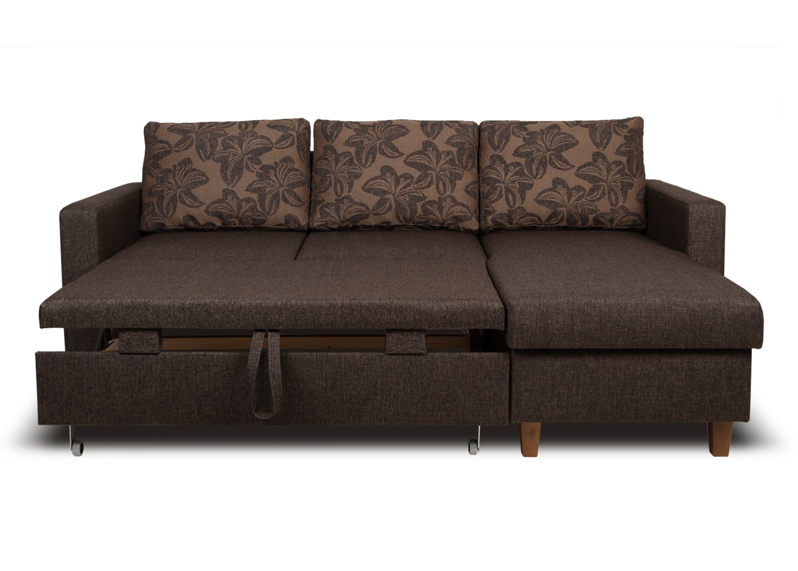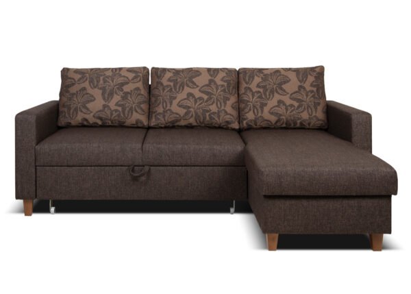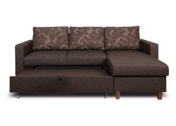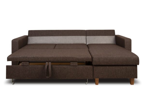 • Tilava säilytyslaatikko: sohvan kulmaosan alla on tilava säilytyslokero, johon voit kätevästi sijoittaa liinavaatteet, peitot ja tyynyt, mikä auttaa pitämään olohuoneen siistinä ja järjestyksessä