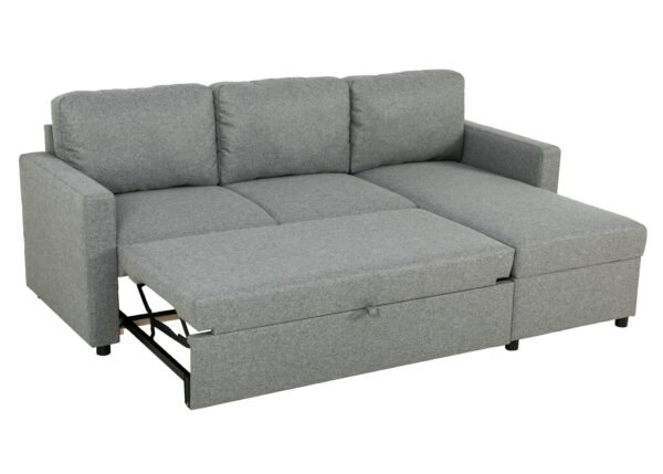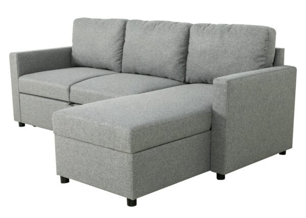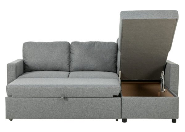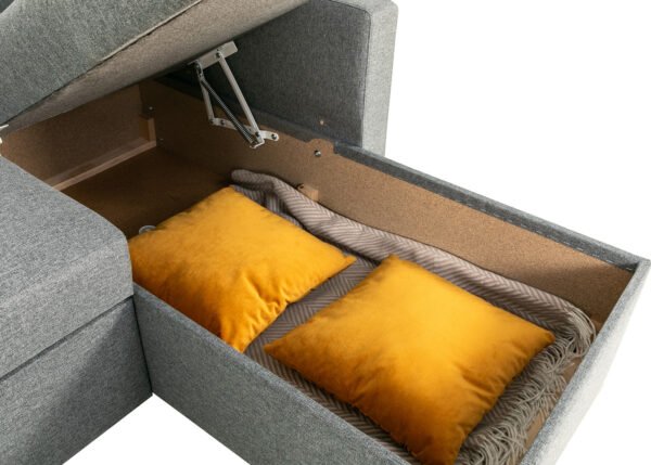 • Tilava pyykkilaatikko: sohvan kulman alla on tilava säilytyslokero, johon voit kätevästi sijoittaa liinavaatteet, peitot ja tyynyt, mikä auttaa pitämään olohuoneen siistinä ja järjestyksessä