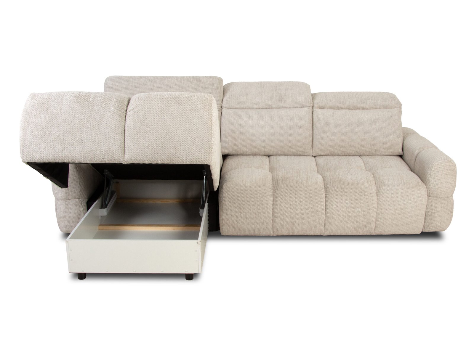 • Sohvan takaosa on viimeistelty, vuodevaatelaatikolla