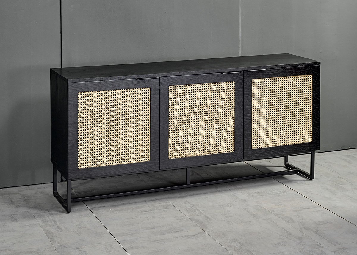 • Lipaston materiaali: 18 mm MDF-levy, päällystetty luonnonvärisellä tammiviilulla, rottinkiovet