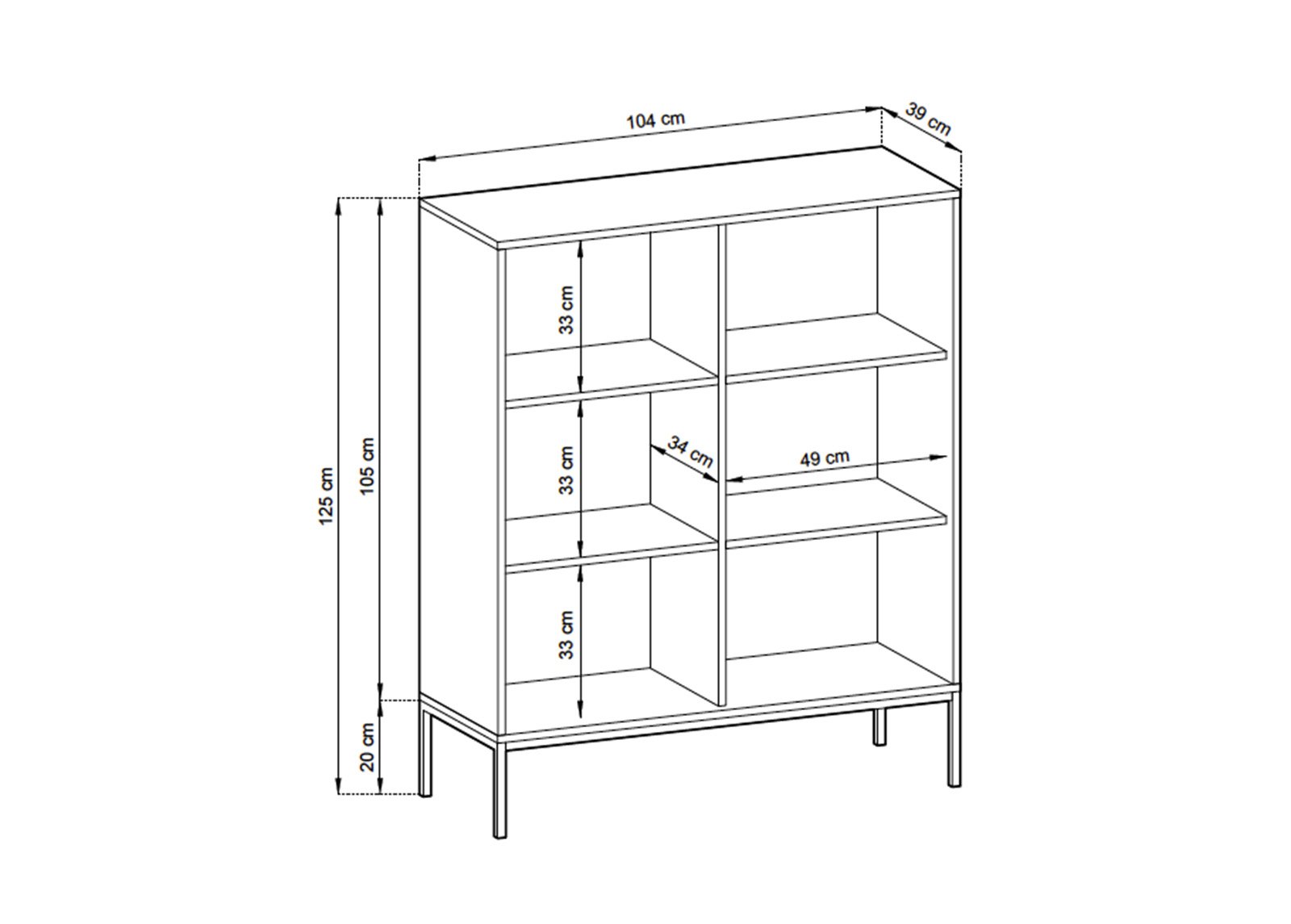 • Mitat: leveys 104 x syvyys 39 x korkeus 125 cm