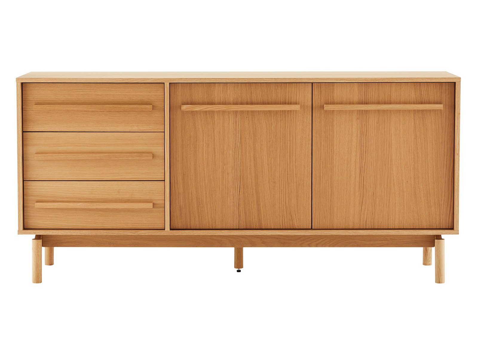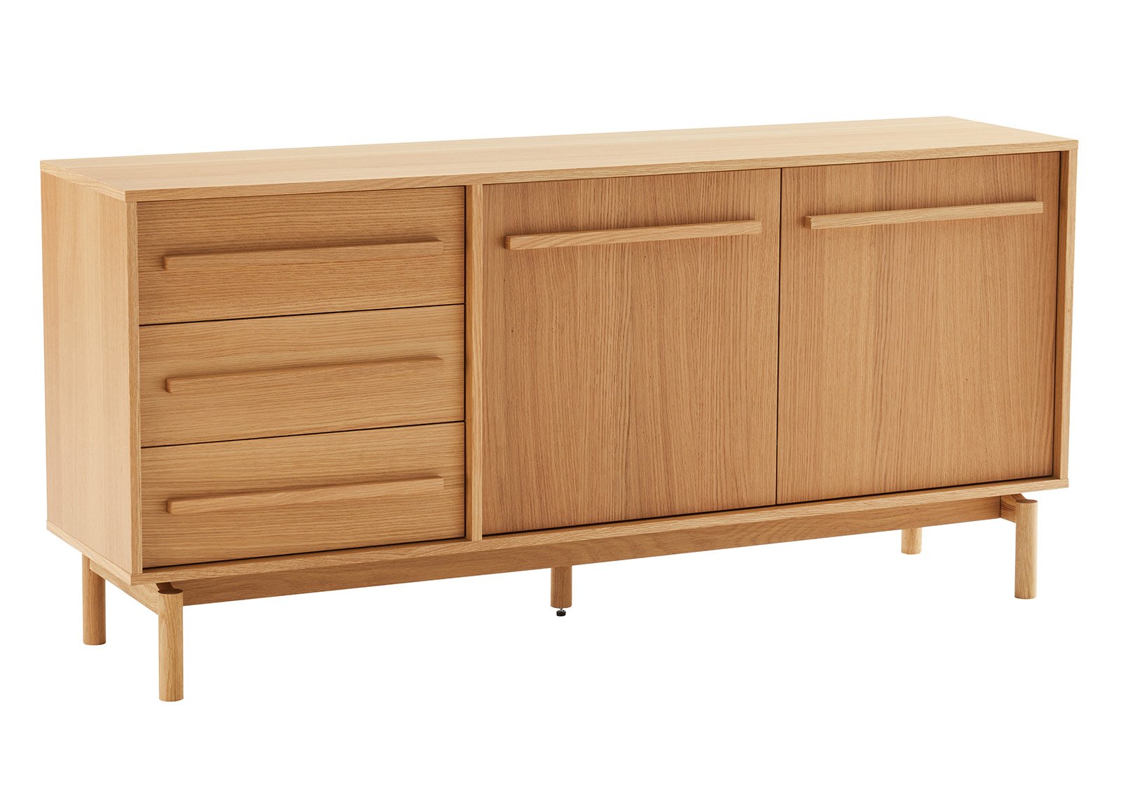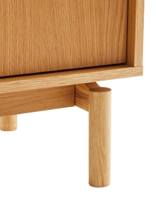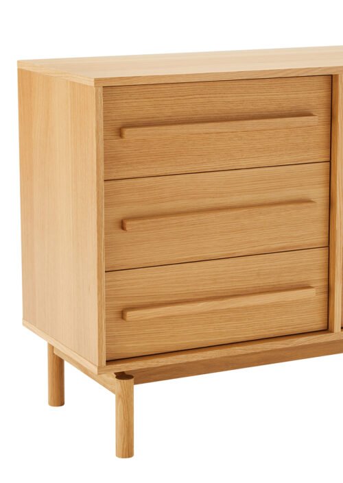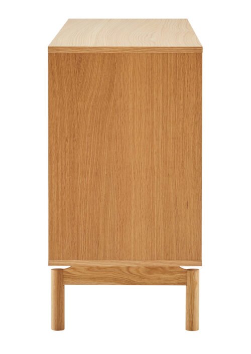 Valmistettu laadukkaasta lastulevystä ja MDF:stä, joita peittää kaunis tammiviilu – se tuo esiin aidon puun luonnollisen sävyn ja lämpimän ilmeen. Täyspuiset jalat ja vetimet lisäävät tuotteen kestävyyttä, vakautta ja ajattomuutta.
