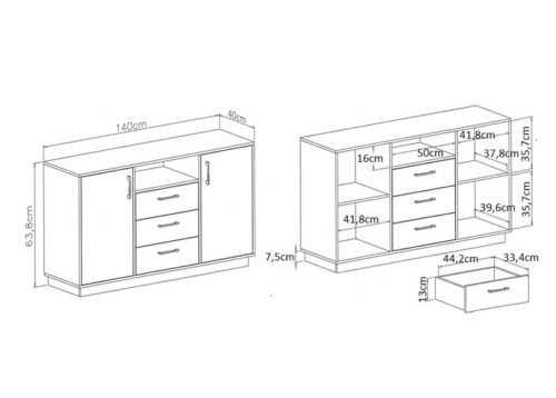 • Mitat: leveys 140 x syvyys 40 x korkeus 84 cm