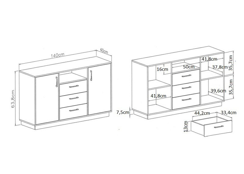 • Materiaali: laminoitu 16 mm paksu kalustelevy ABS-reunoilla