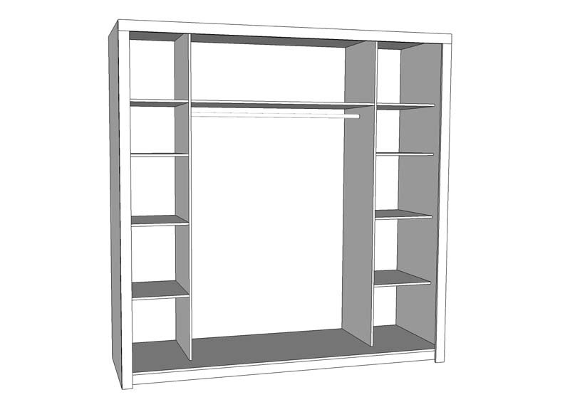 • Keskiosassa on 1 pitkä vaatetanko ja hylly