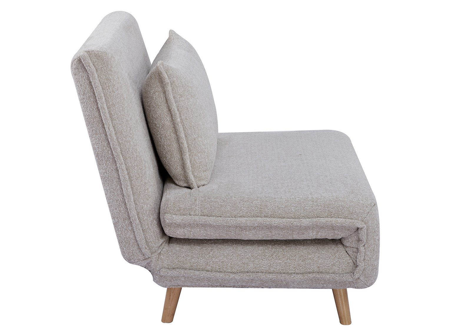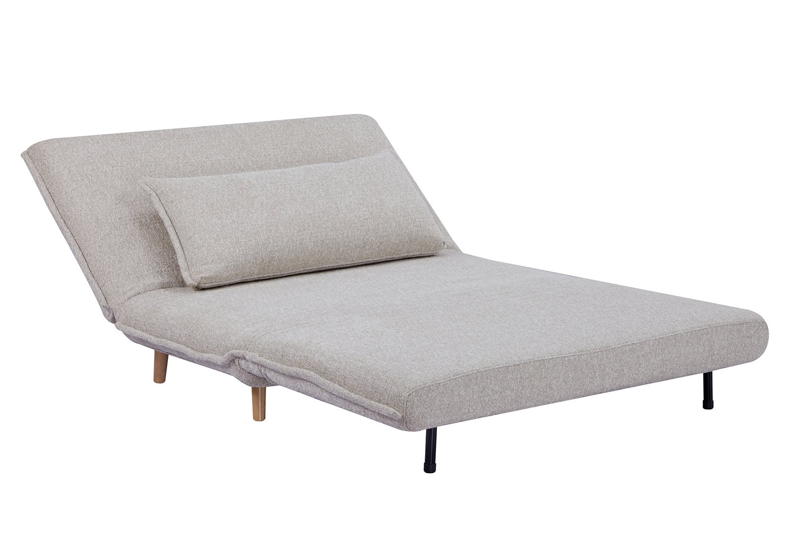 Nojatuolisänky VIOLA beige on tyylikäs ja monipuolinen huonekalu, joka yhdistää mukavan nojatuolin ja käytännöllisen Vuoderatkaisun. Pehmeä beige kangas luo rauhallisen ja kodikkaan tunnelman, samalla kun luonnonsävyiset puujalat lisäävät lämpöä ja luonnonläheisyyttä. Helpon avausmekanismin ansiosta voit muuttaa sen nopeasti mukavaksi makuupaikaksi, joka sopii erinomaisesti vieraiden majoittamiseen tai rentouttavaan lepohetkeen.