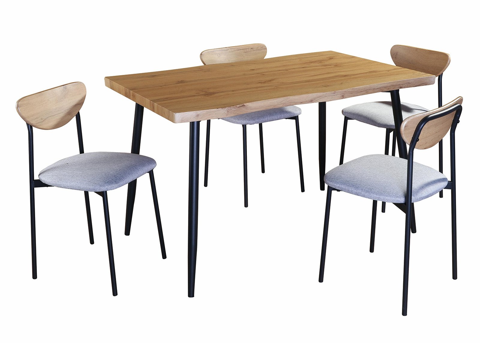 MARC on tyylikkään moderni ruokailuryhmä, jossa yhdistyvät ilmava rakenne, luonnonmateriaalit ja mukavuus. Setti sisältää yhden ruokapöydän ja neljä verhoiltua tuolia – ihanteellinen valinta niin pienempään kaupunkiasuntoon kuin tilavaan perhekotiinkin.