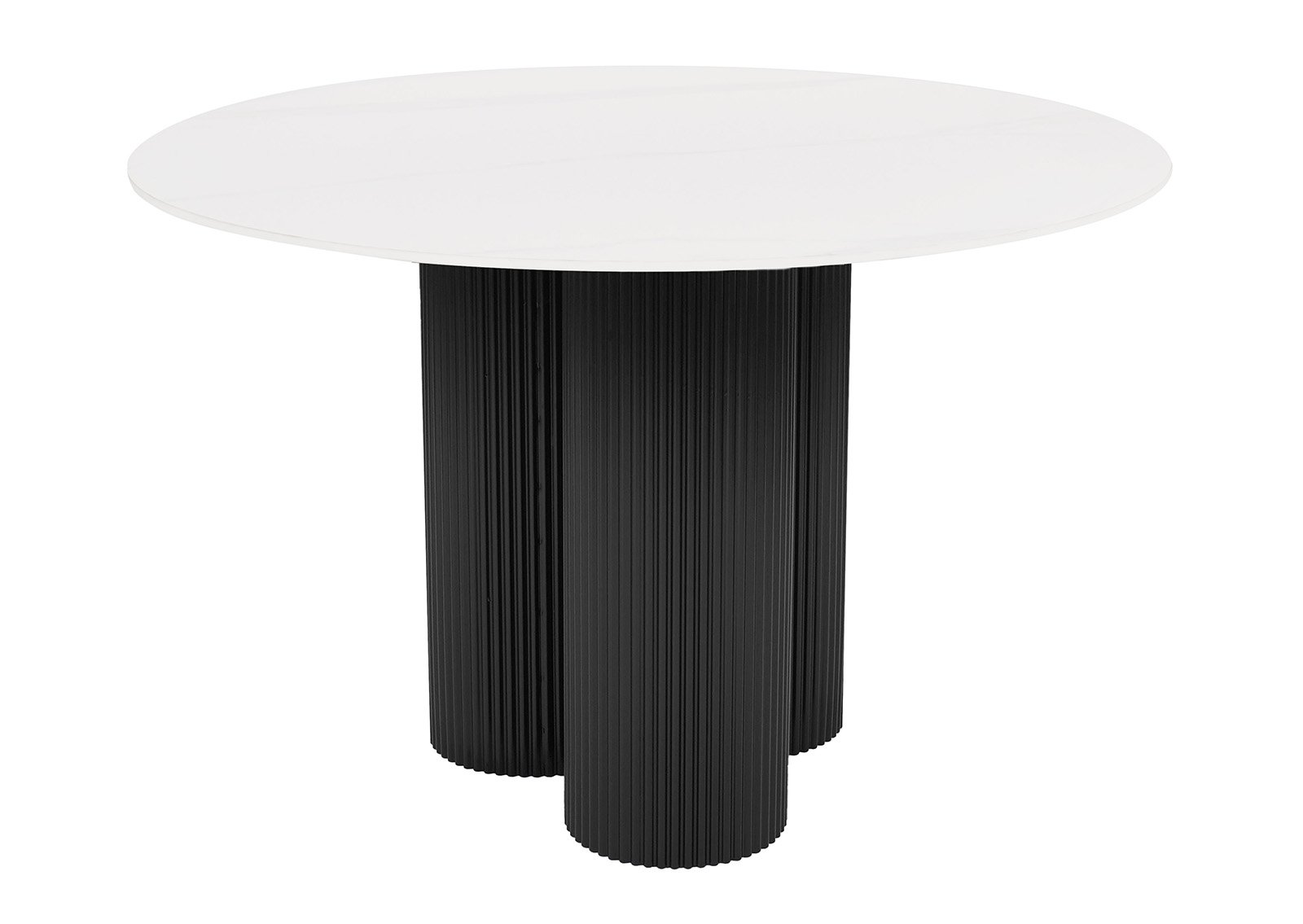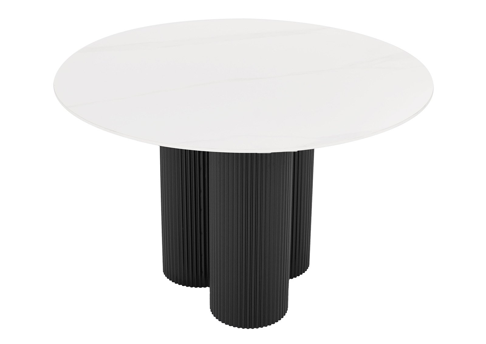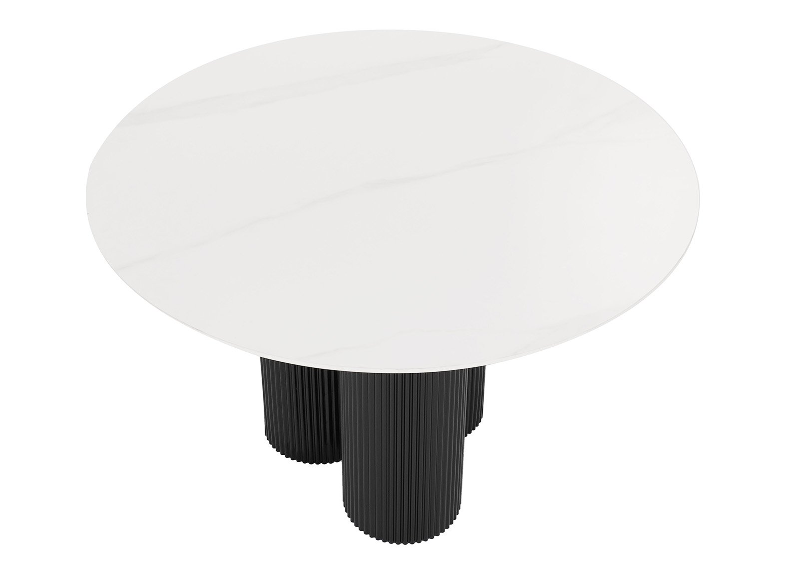 ALEXA-ruokapöytä on silmiinpistävä yhdistelmä modernia muotoilua ja korkealaatuisia materiaaleja. Pyöreä marmorikeraaminen pöytälevy ja veistokselliset mustat jalat luovat tyylikkään ja nykyaikaisen tunnelman ruokailuhuoneeseen.