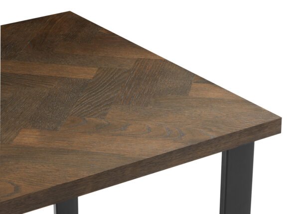 • Pöytälevy: 40 mm MDF-levyä, päällystetty luonnonvärisellä tammiviilulla, jossa on tyylikäs kalanruotokuvio ja savun tammen sävy
