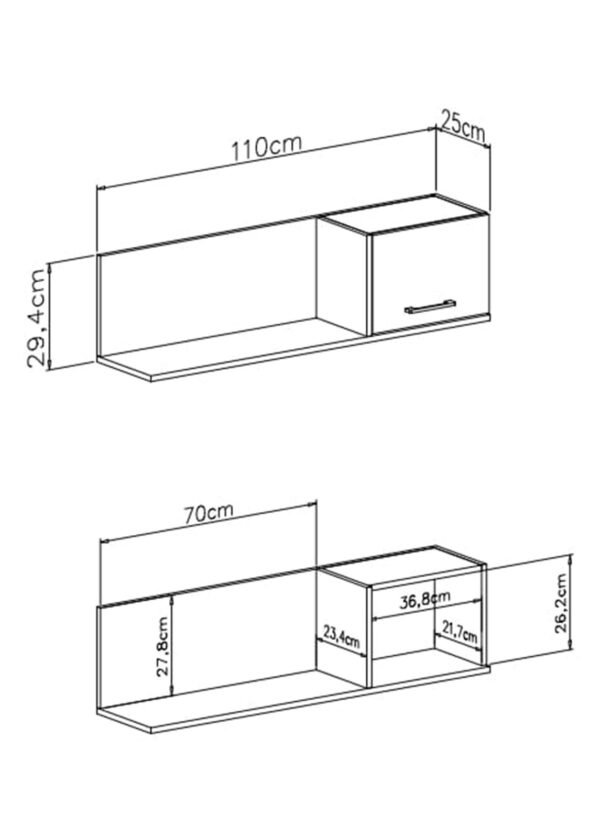 • Mitat: leveys 110 x syvyys 25 x korkeus 30 cm