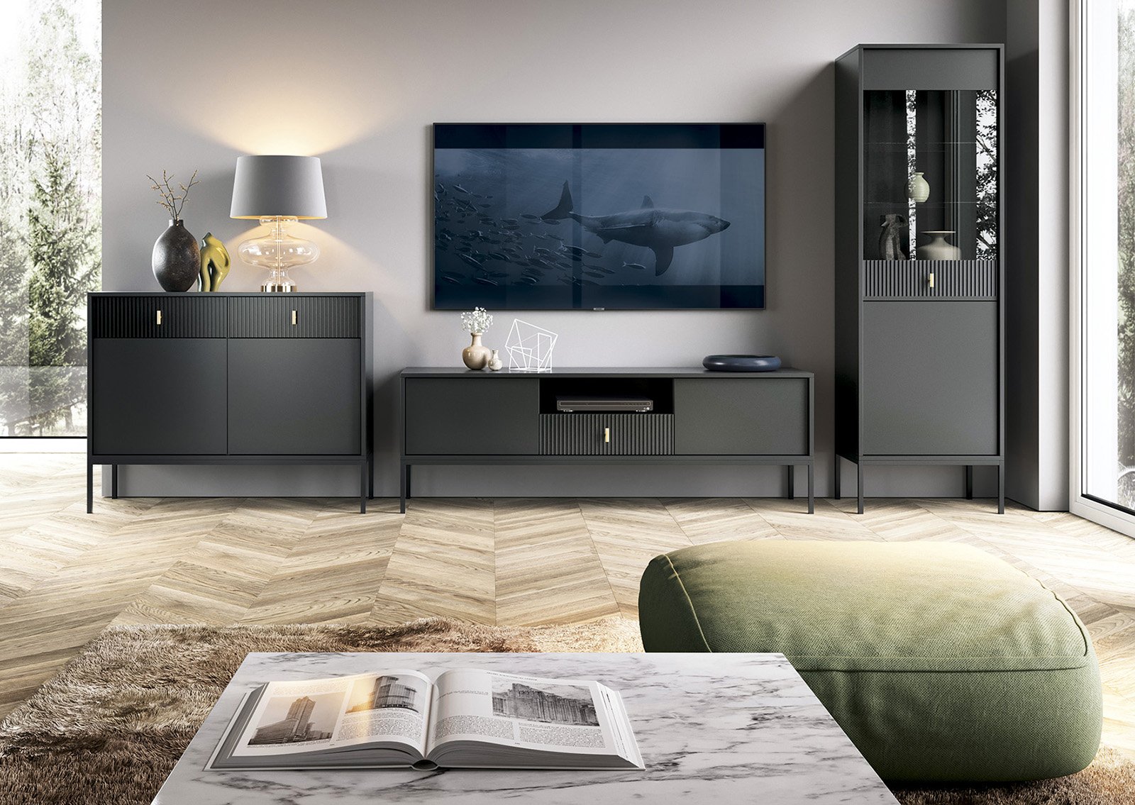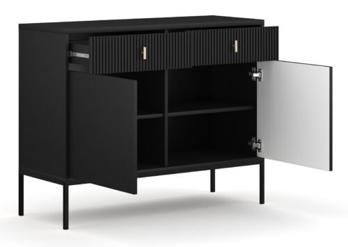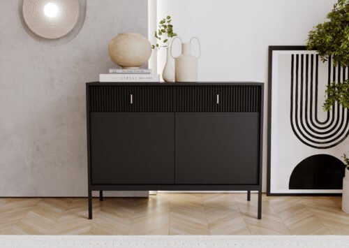 Nykyaikainen muotoilu, joka sopii vaativimpaankin sisustukseen – musta MADELEINE -lipasto tarjoaa eleganttia kontrastia, viimeisteltyjä yksityiskohtia ja käytännöllistä tilavuutta. Sen minimalistinen muoto kohtaa teksturoidut etupaneelit ja hienostuneen mustan sävyn, luoden katseenvangitsijan, joka korostaa koko huoneen luonnetta.