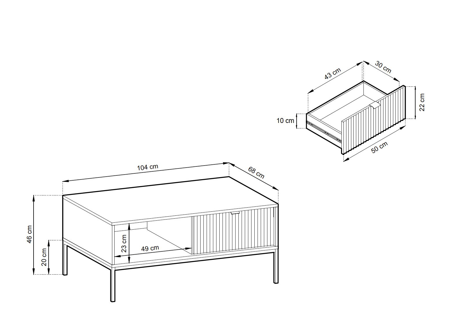 • Mitat: leveys 104 x syvyys 68 x korkeus 46 cm