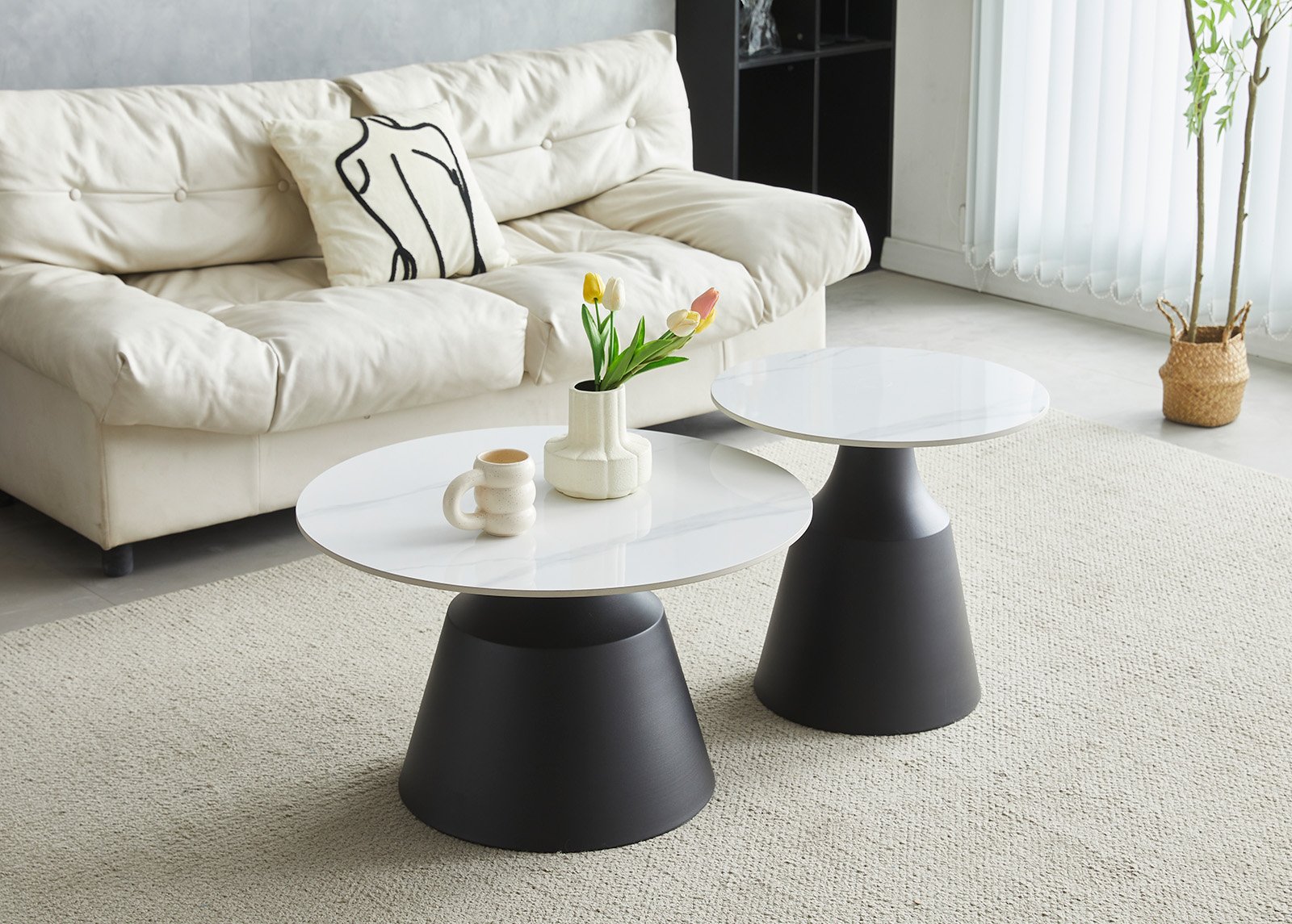Pienemmän pöydän mitat: halkaisija 50 x korkeus 48 cm