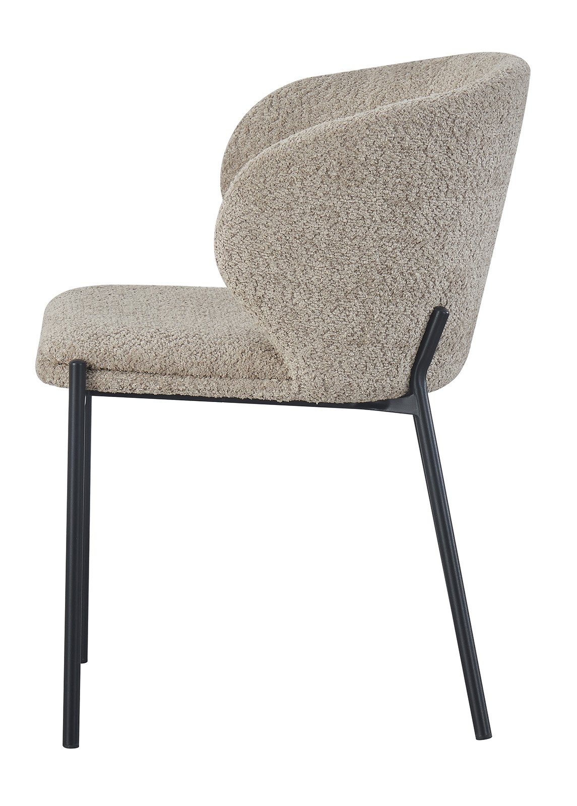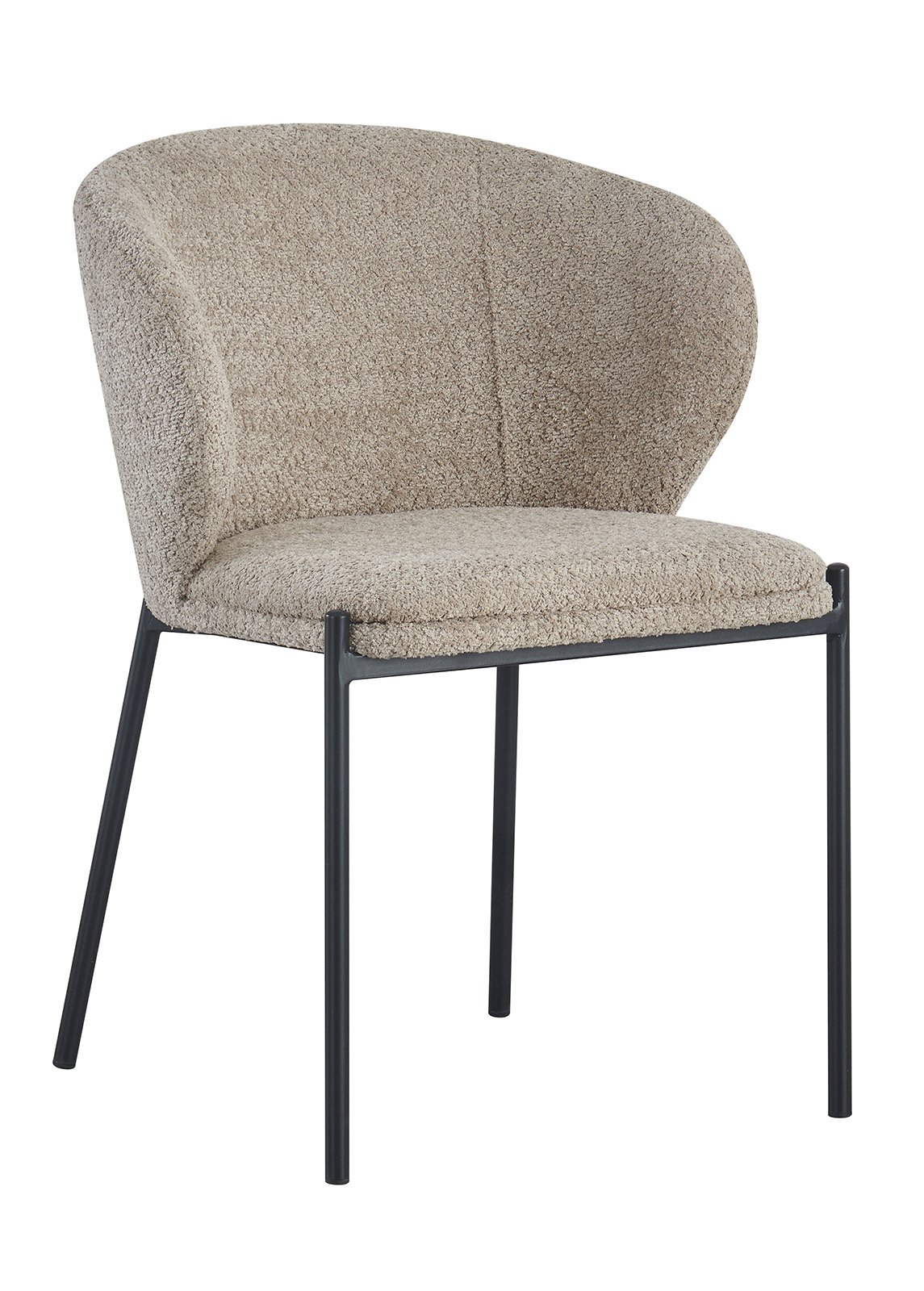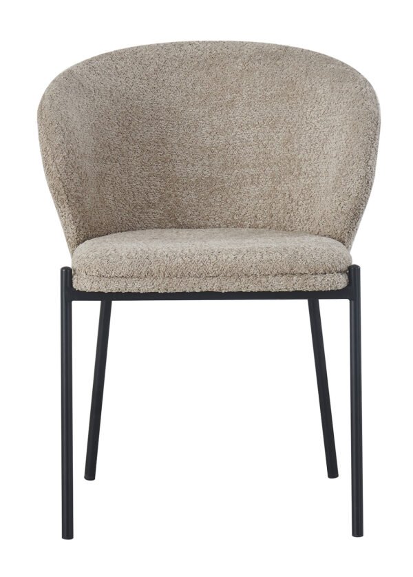 CARLO-tuoli yhdistää mukavuuden ja modernin muotoilun tuoden persoonallisuutta ja eleganssia mihin tahansa tilaan. Beige bouclé-tyylinen kangas lisää visuaalista pehmeyttä ja rakennetta, kun taas mustat metallijalat korostavat modernia ilmettä. Täydellinen ruokailutilaan, olohuoneeseen tai julkiseen sisustukseen.