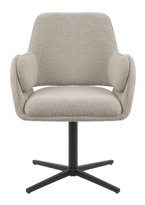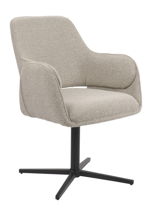 Tuoli WREN, beige, yhdistää nykyaikaisen mukavuuden ja käytännöllisen toiminnallisuuden. Vaalea beige verhoilu luo viihtyisän ja elegantin tunnelman tuoden tilaan valoa ja keveyttä. Minimalistinen musta metallinen jalkarakenne lisää modernia kontrastia ja pitää kokonaisilmeen tyylikkään puhtaana. 360° kääntyvän alustan ansiosta tuoli on erityisen mukava päivittäisessä käytössä tarjoten liikkumisen vapautta ja joustavuutta eri tilanteissa.