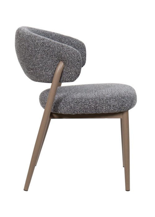 Harmaa kangas lisää lämpöä ja rakennetta, ja harmaanruskealla savunsävyisellä metallijalkojen viimeistelyllä on moderni, kevyt ja kestävä ilme.