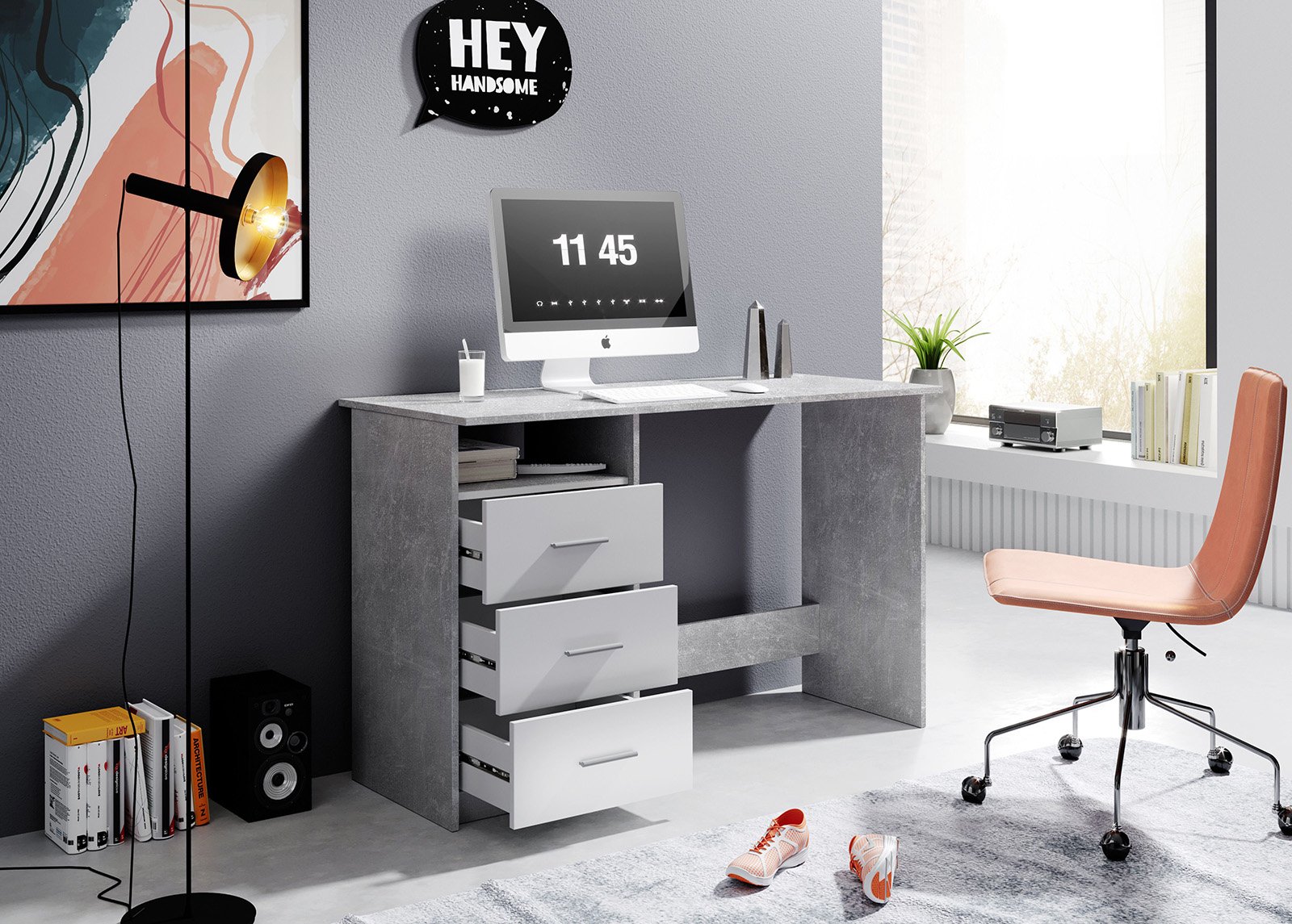 • Pöydän laatikot voidaan sijoittaa molemmille puolille