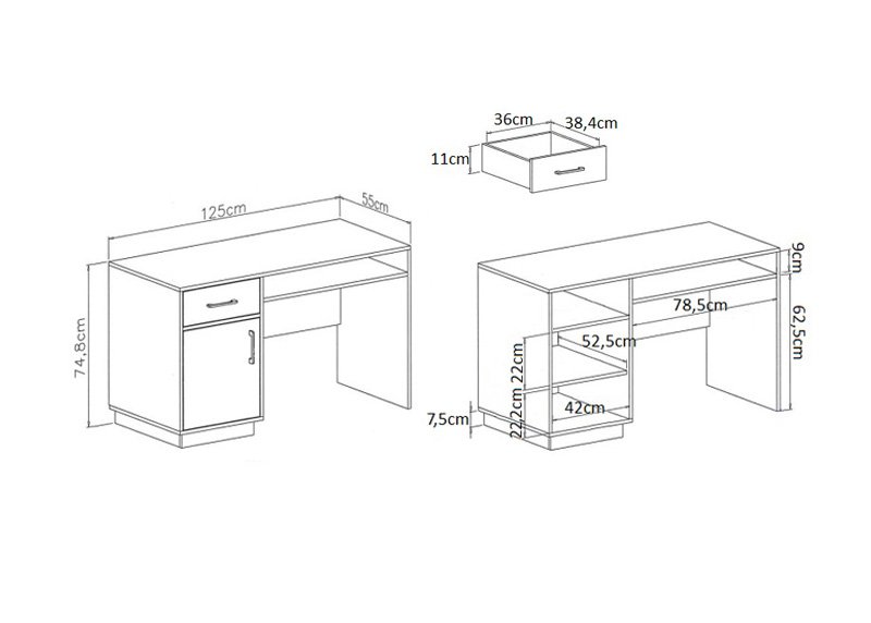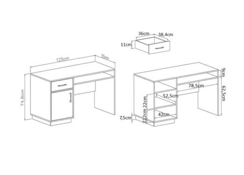 • Mitat: leveys 125 x syvyys 55 x korkeus 75 cm