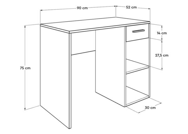 • Mitat: leveys 90 x syvyys 52 x korkeus 75 cm