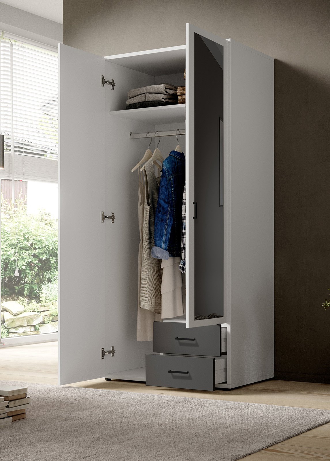 • Yhdessä kaapin ovessa on peili