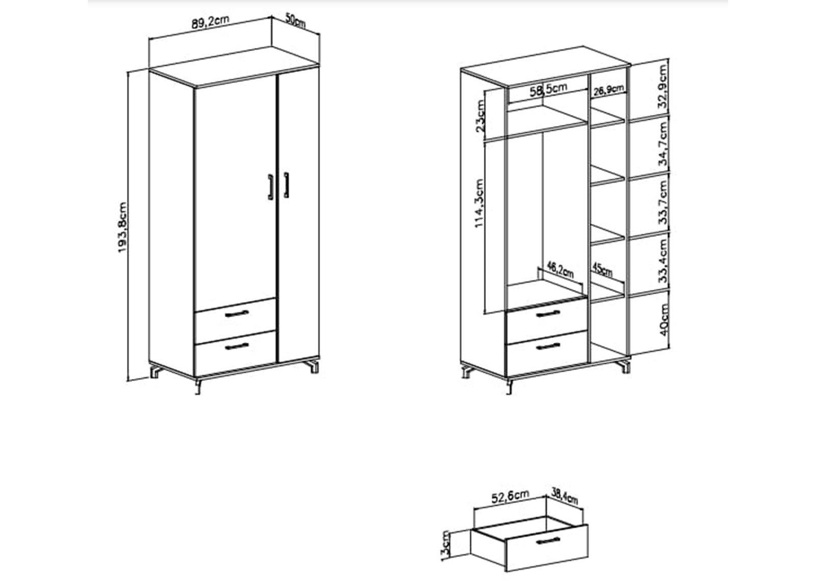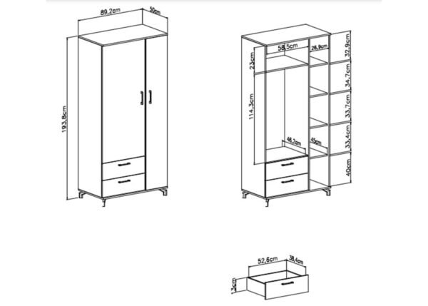 • Mitat: leveys 90 x syvyys 50 x korkeus 194 cm
