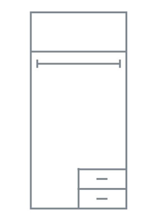 Vaatekaappi, jossa kaksi ovea ja kaksi laatikkoa