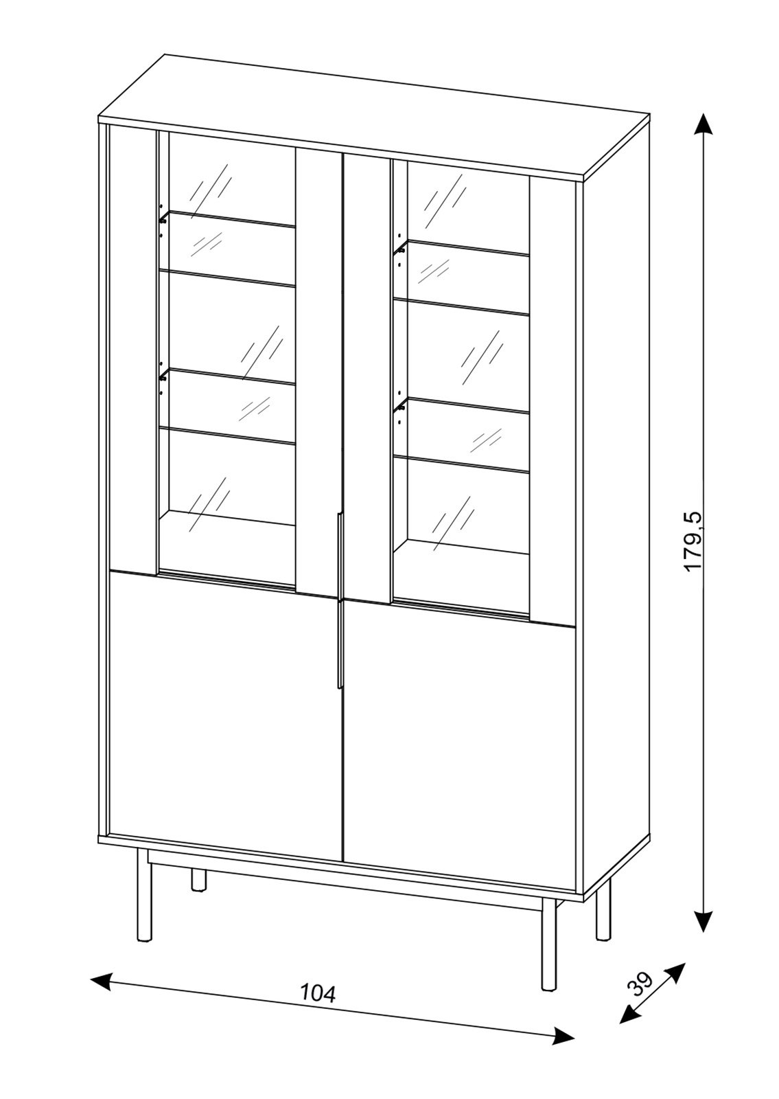Mitat: leveys 104 × syvyys 39 × korkeus 179,5 cm