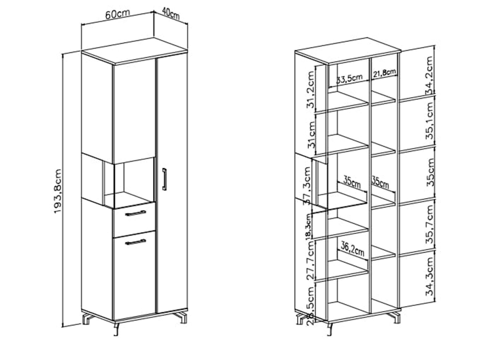• Mitat: leveys 60 x syvyys 40 x korkeus 194 cm