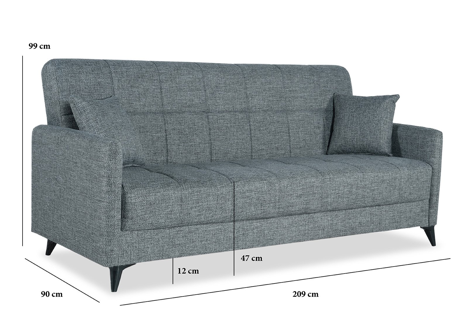 • Sohva: leveys 209 x syvyys 90 x korkeus 99 cm